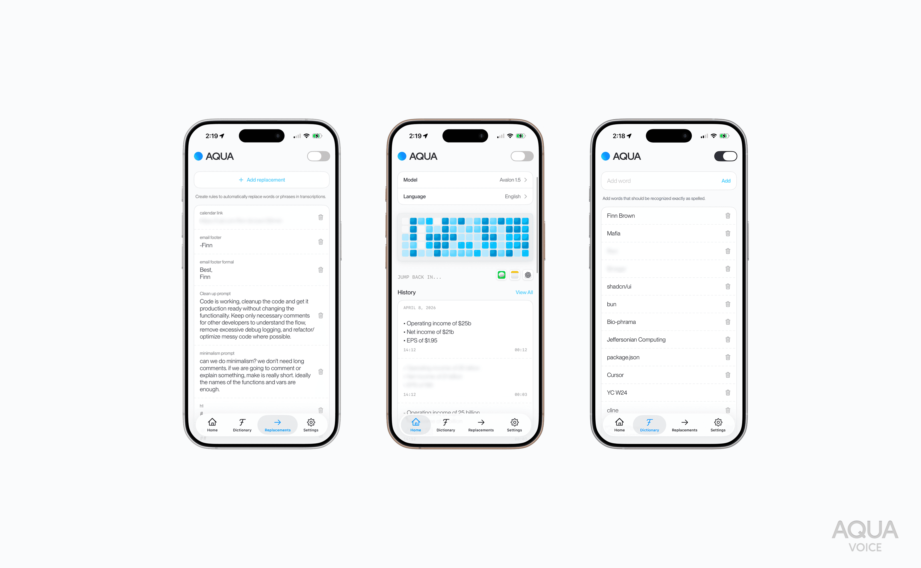If you've already set up Aqua on desktop, your profile settings, custom dictionary, custom instructions, and replacements will transfer over automatically. If you add any of that to the iPhone app, they'll sync to the desktop.