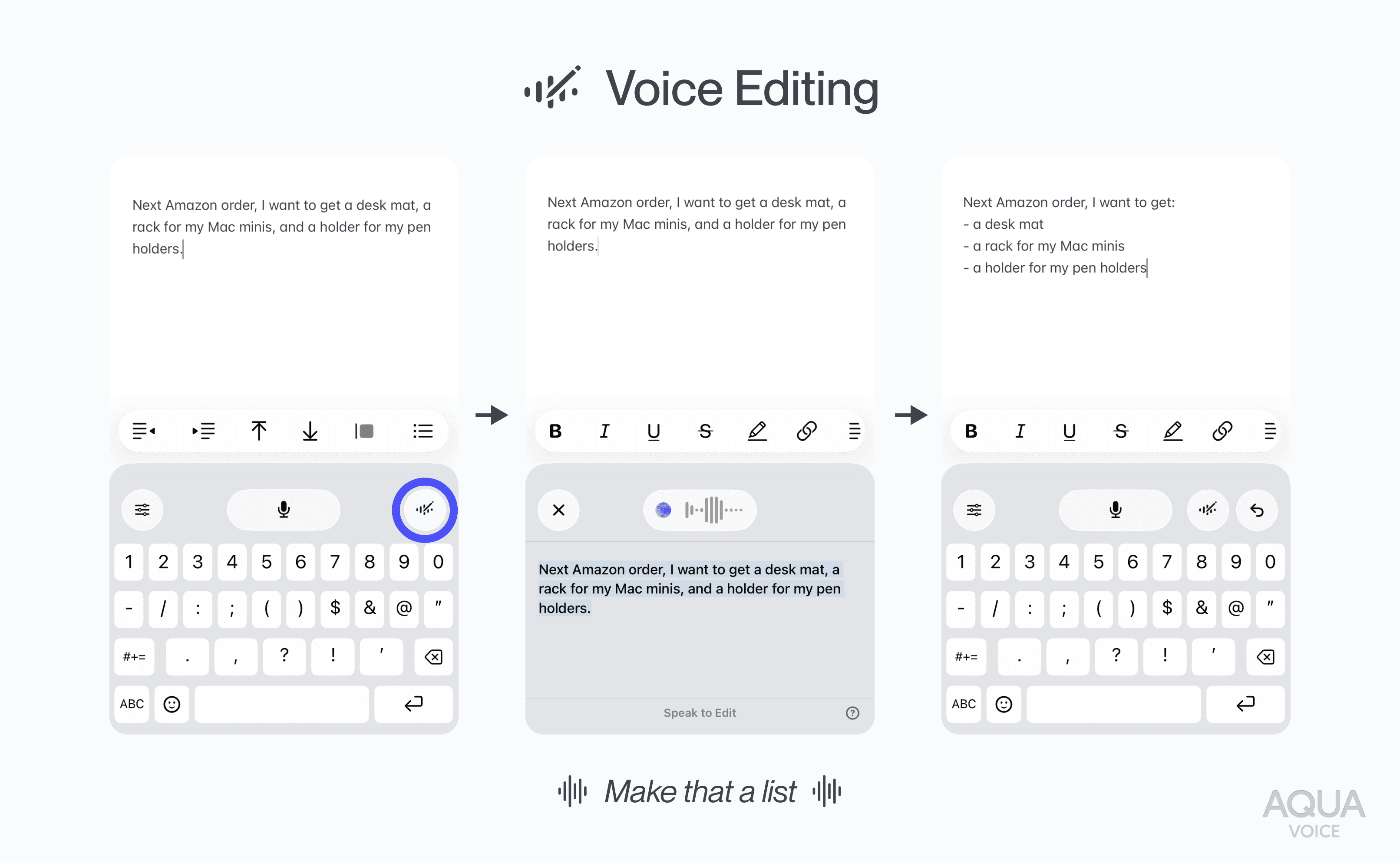 Aqua Voice for iOS is live. It lets you write and edit text using only your voice anywhere.